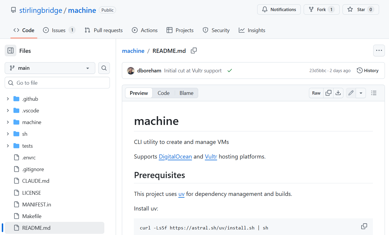 I wanted to use Claude to add new features to a Python CLI utility called machine. It's used to automate the creation and configuration of test VMs. Handy for when you need to test system deployment tools. Like Terraform but easy to use. Machine had been tested the old school way: when new code was written I ran it myself then observed whether it worked or not. Automated testing wasn't worthwhile because it was a side project with a user base of approximately one.